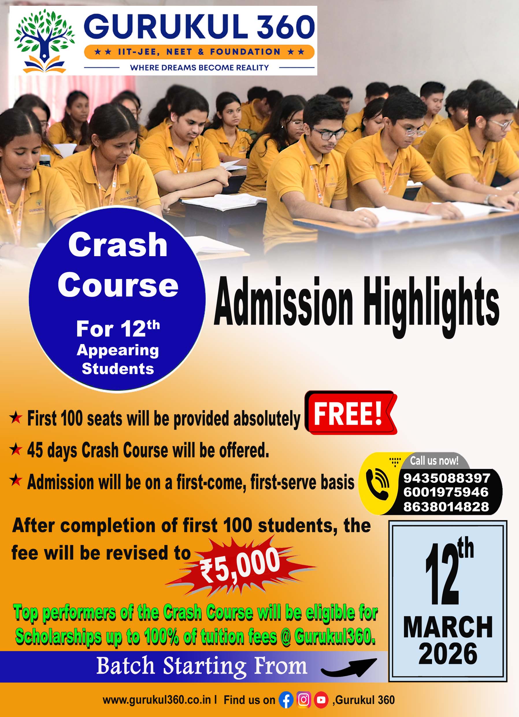 Welcome to Gurukul 360 Nagaon, a comprehensive residential coaching institution for Medical, Engineering, Boards, and School Integrated Programs. Read more..